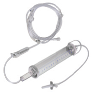 Em nossa linha de equipos, os modelos que possuem em sua nomenclatura a sigla EQM são caracterizados pela presença de uma câmara graduada de 150 mL (bureta). Estes equipos com bureta são comumente utilizados na assistência prestada para pacientes com restrição hídrica, pacientes de pediatria e principalmente em neonatologia, pois proporcionam importantes benefícios, tais como: maior confiabilidade entre o volume nominal e o volume real de infusão quando comparada a dos frascos de soro, (precisão da graduação da bureta é superior