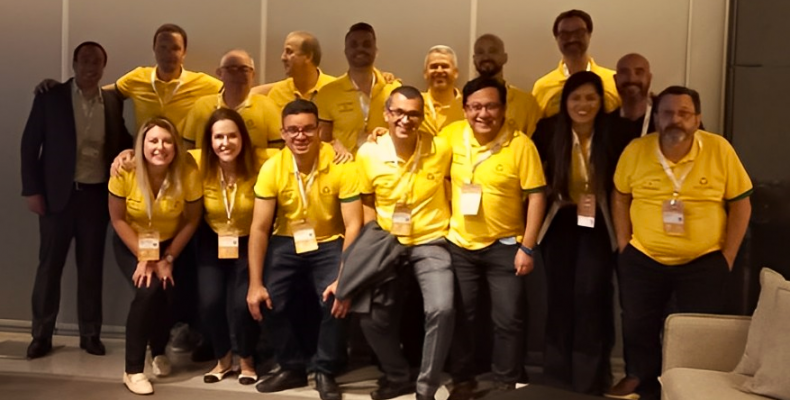 Agachado (da esquerda para direita): Vanessa Gomes, Silmara Formenti, Thiago Gonçalves, Gilmar Ribeiro, Gilmar Iwami, Selma Costa, Ivan Ireno.